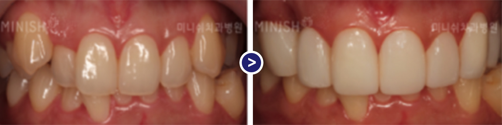 MINISH veneers are not laminate veneers. MINISH veneers are meticulously crafted using exclusive MINISH blocks based on ceramic, which possess properties closely resembling natural teeth in terms of color, texture, biocompatibility, and light transmittance, ensuring the most natural and similar appearance to natural teeth.