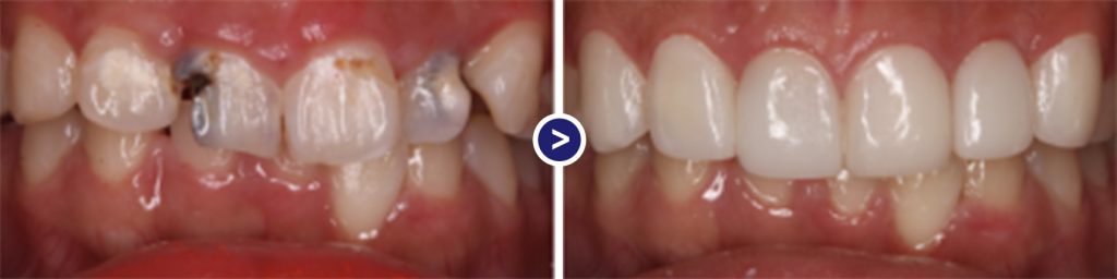 In cases of widespread damage to the anterior teeth, crown treatments have traditionally been the go-to solution which requires minimally 0.5-0.7mm of shaving to create space for the prosthetic. For these cases, we offer Dual MINISH solution which effectively shields the entire front surface of damaged teeth without the need to remove precious tooth structure. Perfect for patients with tooth wear from grinding, acidic erosion, fractures, or cracks.