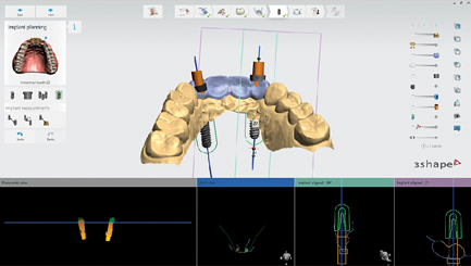 Wir erstellen digitale OP-Schablonen mit modernster Technik wie CT, digitalen Intraoralscannern und der Software 3Shape Implant Studio. So können wir Zahnimplantatbehandlungen sicher und präzise durchführen.